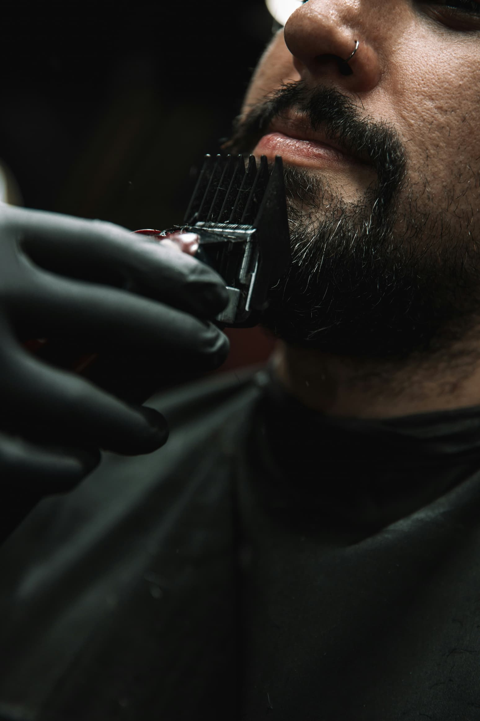 Щеки оформляй от носа к вискам, а шею — чуть выше кадыка, чтобы не срезать лишнего. Ножницами можно подровнять длину на сухих волосах, двигаясь против роста, чтобы видеть реальный срез.